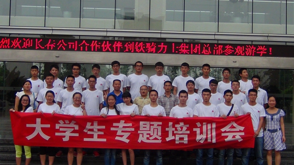 7月9日(ri),由鐵騎力(li)士集(ji)團(tuán)髮(fa)起的(de)大(da)學(xué)生(sheng)暑期社(she))會實踐(jian)正式(shi)啓動(dòng)。來自多(duo)箇(ge)大(da)專(zhuan)院校的(de)數(shu)十名(míng)實習生(sheng)參加(jia)了(le)專(zhuan)題培訓。