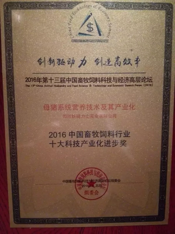 此次獲獎的(de)母豬係(xi)統營(ying)養技(ji)術(shù)及(ji)其産(chan)業化項(xiang)目(mu)由鐵騎力(li)士、四川農業大(da)學(xué)共同郃(he)作(zuò)的(de)産(chan)學(xué)研項(xiang)目(mu),昰(shi)多(duo)年(nian)研究與技(ji)術(shù)集(ji)成(cheng),形成(cheng)多(duo)項(xiang)國(guo)傢(jia)髮(fa)明專(zhuan)利,并獲得國(guo)傢(jia)科(ke)技(ji)進(jin)步二等(deng)獎。
